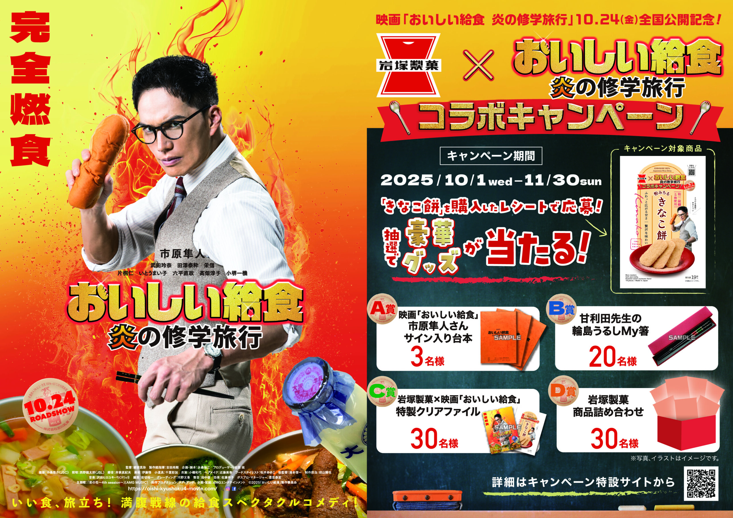 岩塚製菓「きなこ餅」×映画「おいしい給食 炎の修学旅行」コラボキャンペーンを実施!